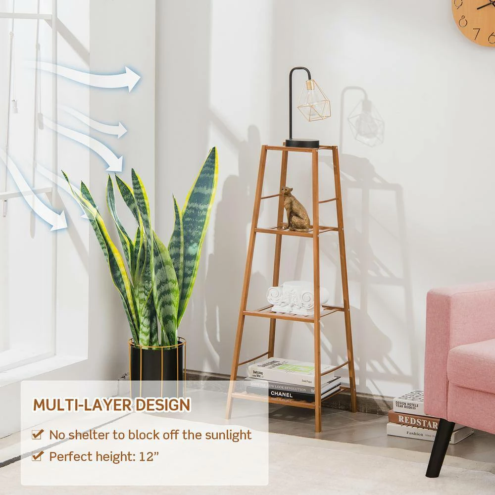 Are you looking for a versatile flower shelf to store your plants and display decorations. Our bamboo plant stand will achieve all above and decorate your indoor and outdoor occasions as well. 4-tier design is spacious enough to place various sized plants, such as succulents, bonsai, flowers. High-quality bamboo ensures a rugged construction for long-term use. Moreover, the wide bottom base and side guardrails make the plant stand more stable and maintain its balance. The slatted shelves ensure good drainage and air permeability and therefore effectively promote the growth of the plants. Besides, whether indoors or outdoors, our plant stand is an ideal choice.