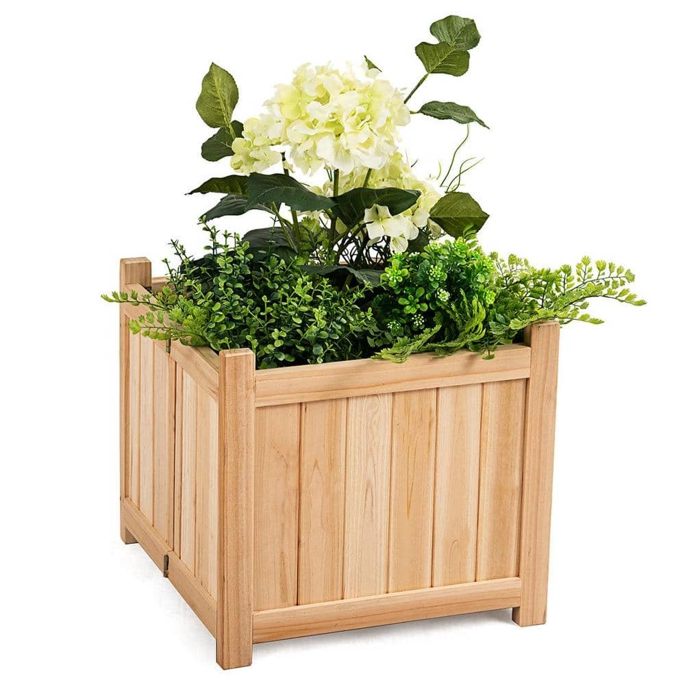 This is our new wood planter box with folding design and removable base. The planter box is made of solid wood to ensure the durability. The easy folding design makes it convenient for you to carry around. The removable base with a hole in the middle is for water leakage. If you need to use indoors, a water catch-tray (not-included) is necessary. Your plant will grow healthily in this natural wooden box.