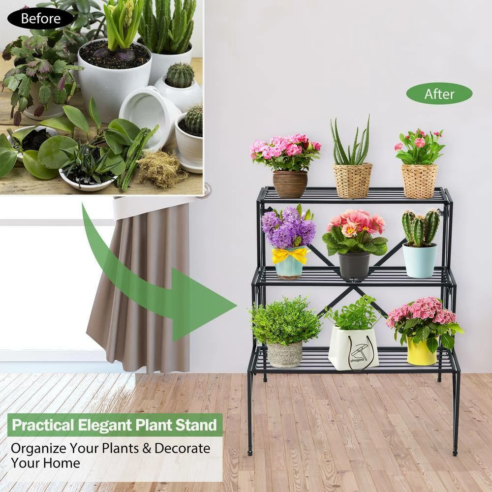 - Package includes: 1 x 3-tier Metal Plant Stand 1 x User’s Manual