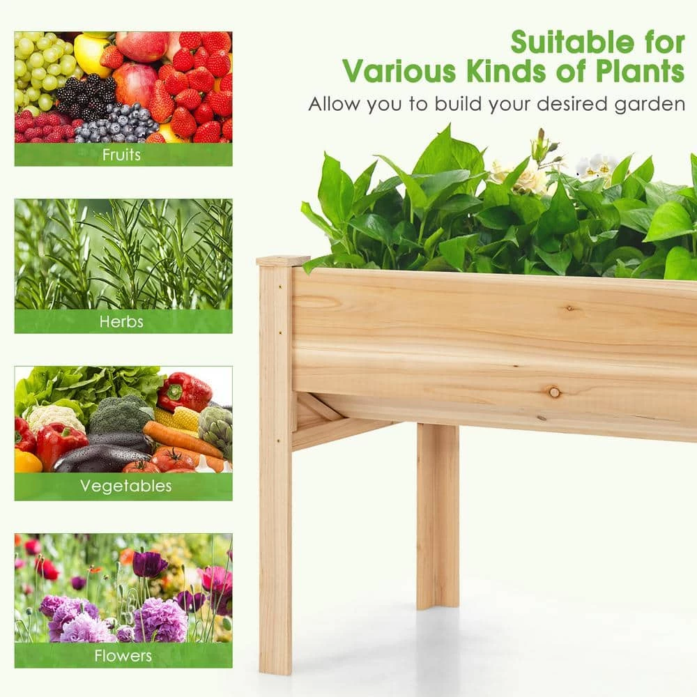 - Large planting space for various plants: measuring 45 in. x 21 in., the elevated wood planter offers ample planting space, allowing you to build your desired garden, beside the depth of the planting space is up to 11.5 in., providing roomy space for plants to take root, it is suitable for various kinds of plants, such as fruits, herbs, vegetables, flowers and more