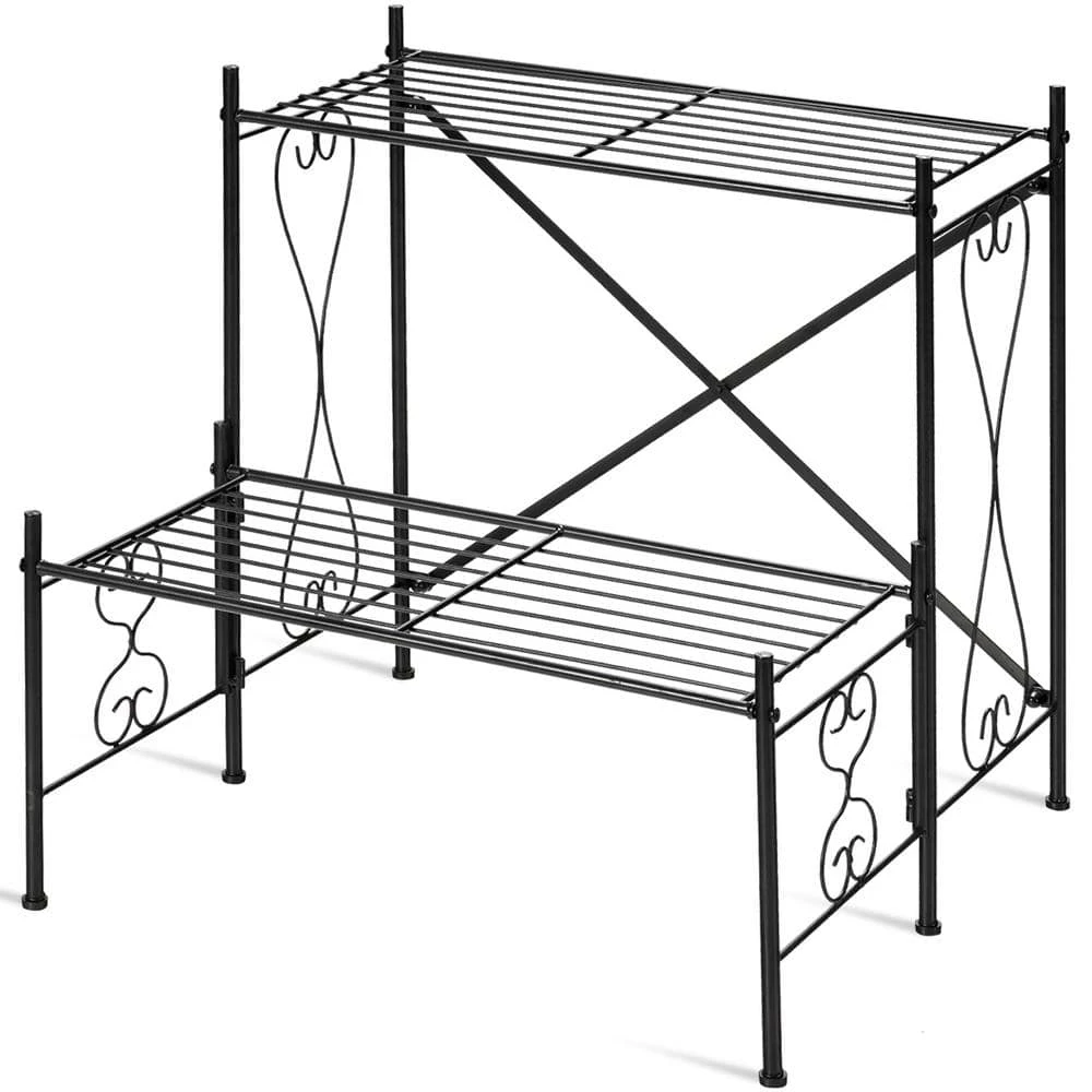 Our metal flower rack compliments the rest of your furniture while meeting your storage needs. Designed with 2-tier shelf, this plant rack offers ample space for all your stuff, such as plants, flowers, pots, shovels and more. Your plants will enjoy enough sunlight due to the vertical design and perfect height. Thanks to its suitable gaps, you don’t have to worry about plants falling accidentally. And the sturdy metal construction with durable black powder coated finish promises long-lasting use. What’ more, you can move and install this lightweight plant stand without much effort. This attractive and space-saving flower pot holder is a perfect tool to decorate your backyard, garden, living room, patio and more. Create a perfect home layout and organize your plants with this sophisticated 2-layer flower stand.
