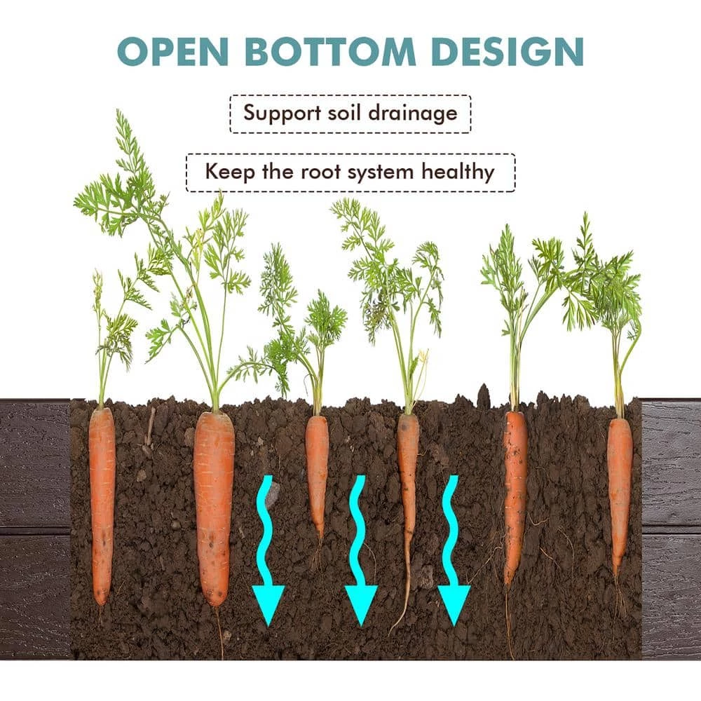 - Weather resistant material: the raised garden bed is made of premium HDPE material with good weather resistance, ensuring long-time outdoor use and it is also safe and friendly for soil, ensuring the healthy growth of vegetables and flowers, besides, the wood grain imitation surface adds a touch of nature to your garden