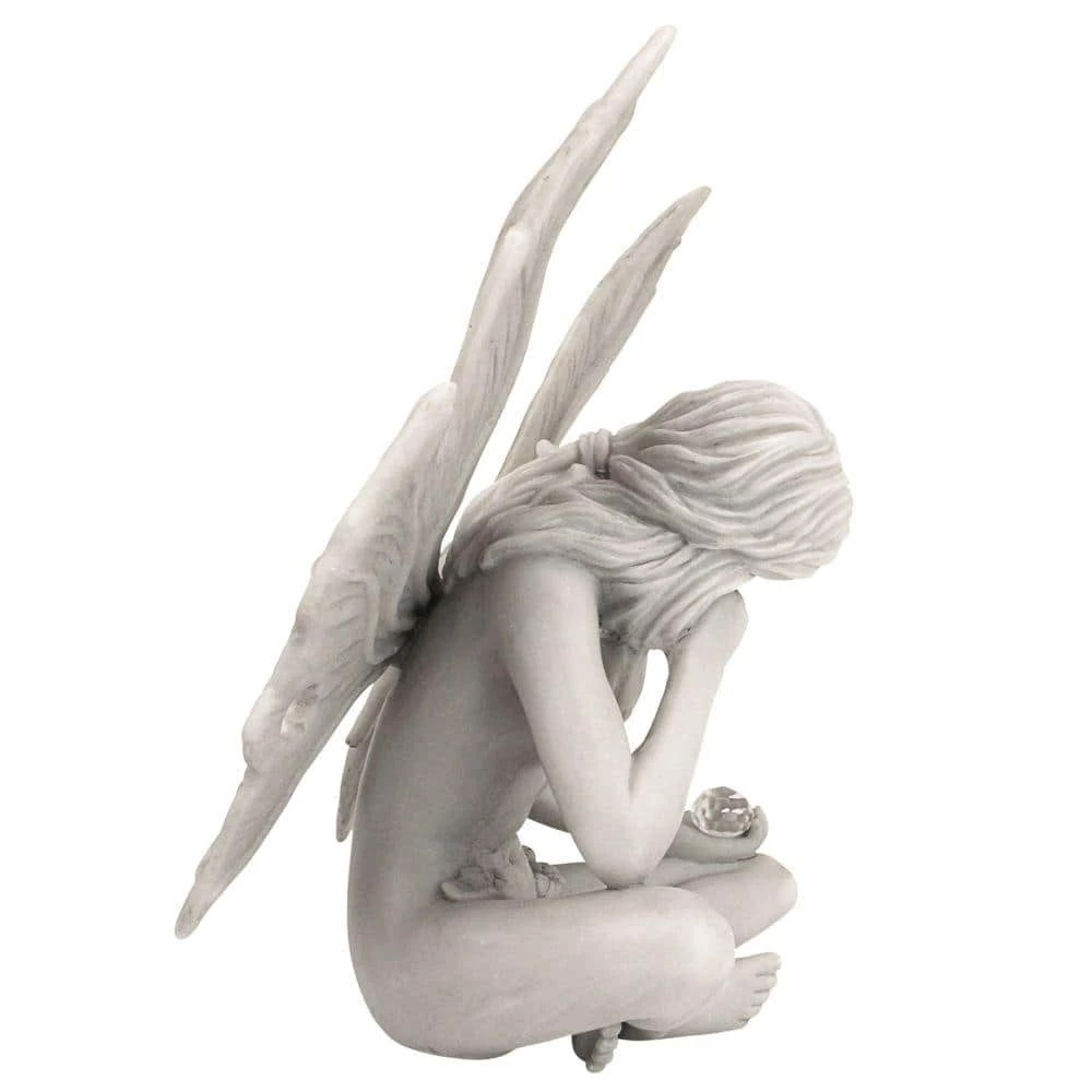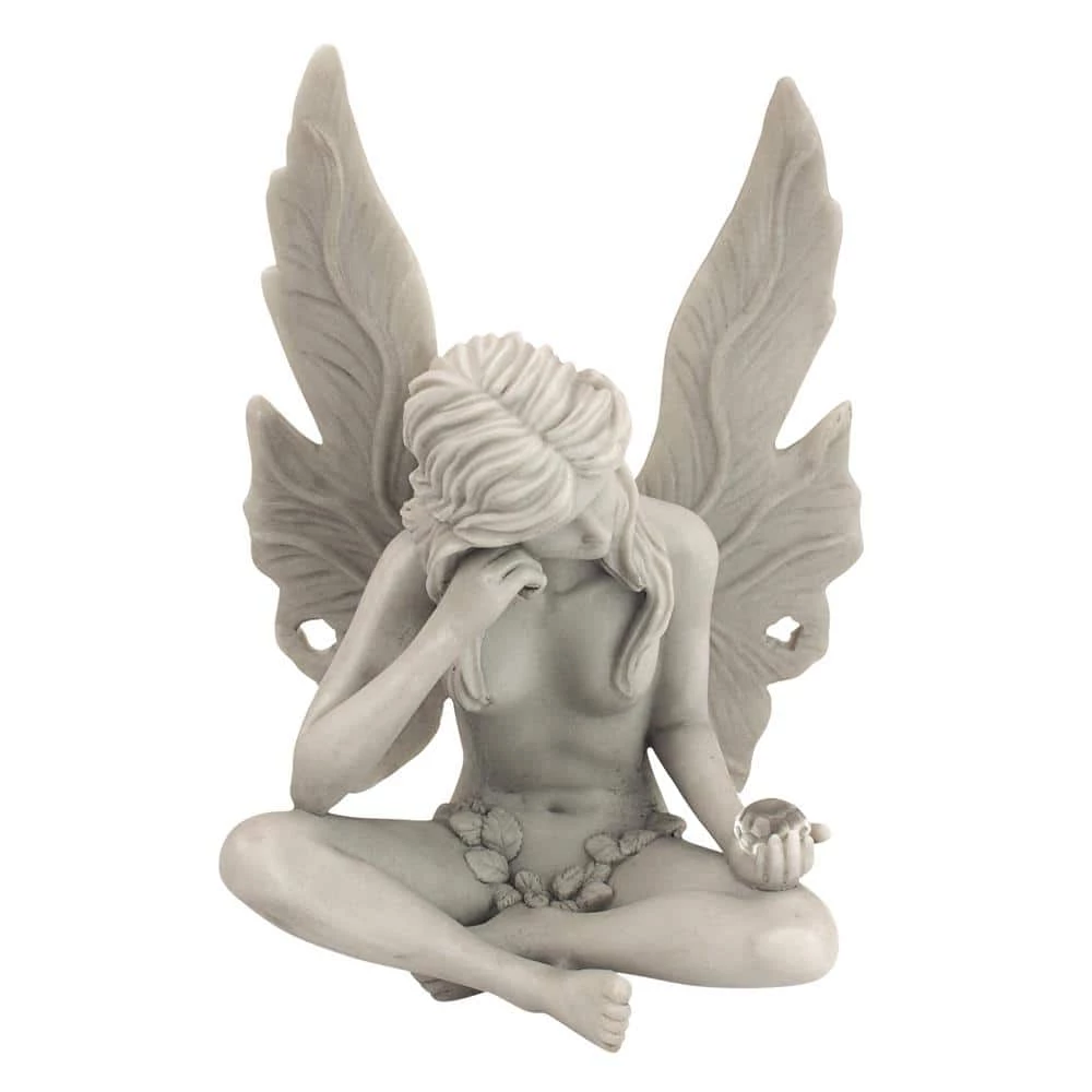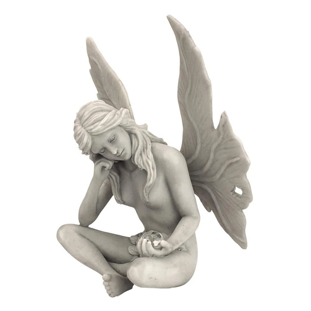 With delicate butterfly wings and a pensive pose, this inventive fairy alights from the rich imagination of artist Evelyn Myers Hartley. Ready to enchant at a moment’s notice, this magical creature is cast in quality designer resin with a faux stone finish to flit from home to garden. This charming collectible makes the perfect gift to yourself or another fairy lover on your list. Please note that this sculpture is a slightly darker grey color than implied by the photo. Gazing Fairy: 7.50 in. W x 6 in. D x 10 in. H, 4 lbs.