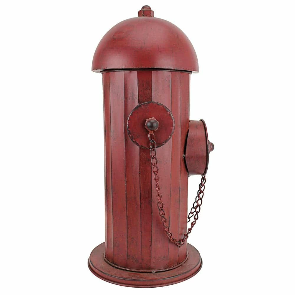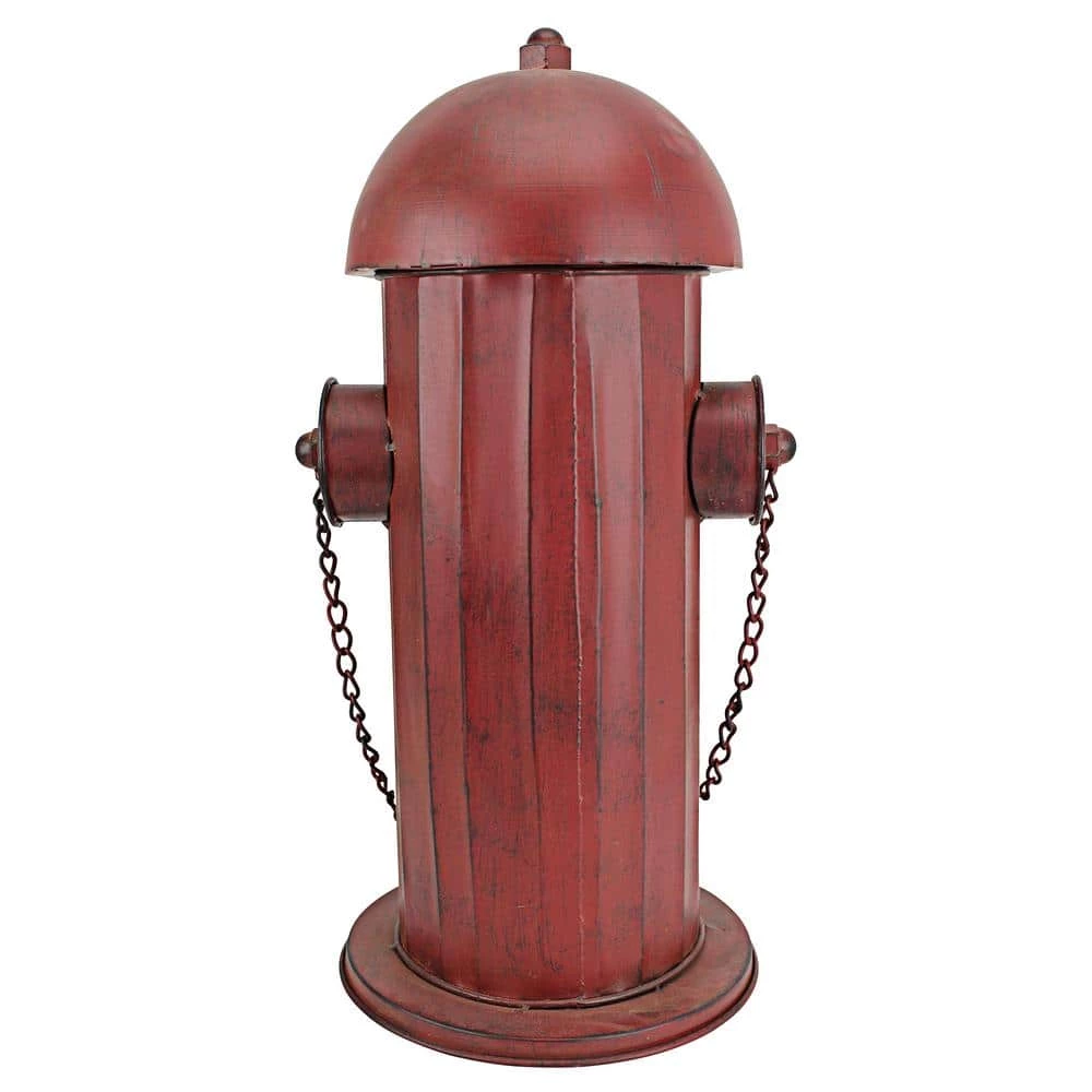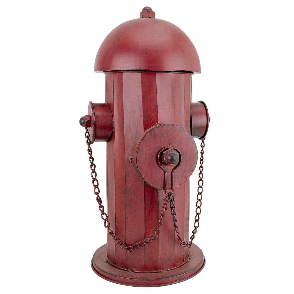 Whether you view this unique vintage-style piece as a collectible best suited to a firefighter or to man’s best friend, our replica fire plug is a hydrant statue sure to spark conversation. Perfect on the patio, the top of the pipe hydrant opens for weighting with sand or stone, but you may as easily use it indoors for storing toys for dogs or human masters. Crafted of metal complete with 3 hose nozzles and 2 metal chains, it is authentically hand-painted 1-piece-at-a-time. Toscano recommends applying rust preventative product if placed outside. 9 in. W x 9 in. D x 18 in. H, 3 lbs.