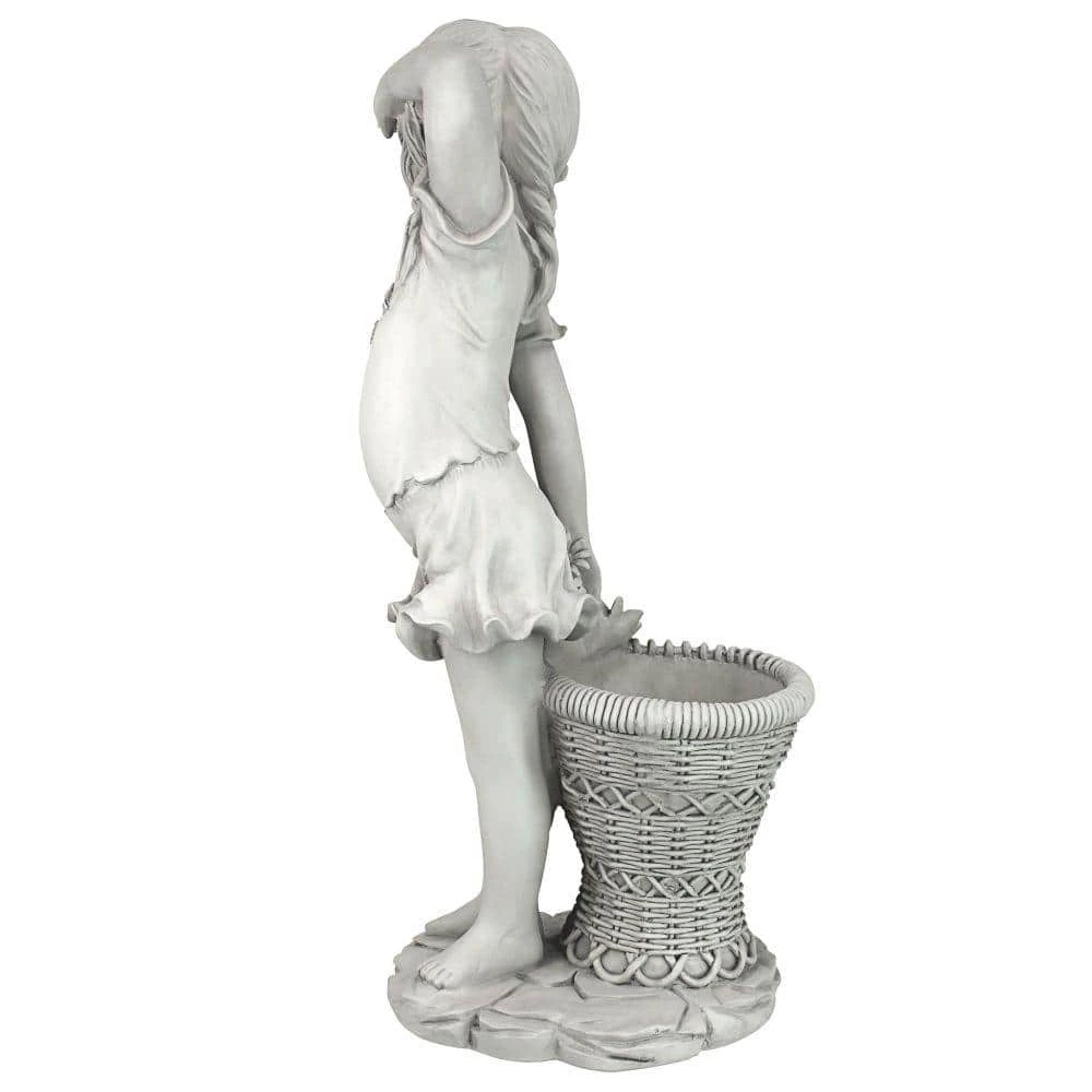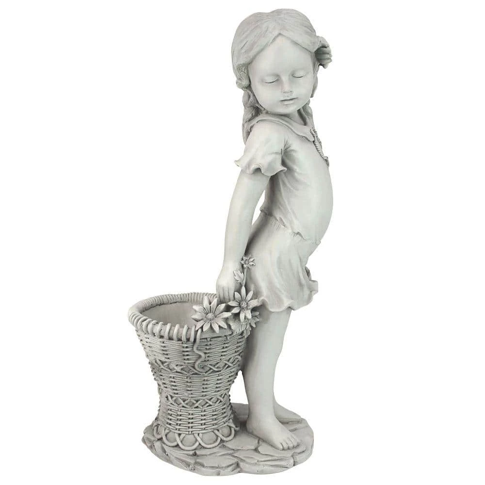 Add the beauty and idealism of childhood to your favorite garden spot. Little Miss Frances is a wonderful child sculpture that charmingly shows off dimpled knees and turned up toes as she stretches from her post at the posies. Superbly created exclusively for Design Toscano with a sculpted wicker urn for your live or dried plants, our playful child statue is cast in quality designer resin to capture the relaxed feel of an endless summer. 10 in. W x 8 in. D x 21.50 in. H, 5 lbs.