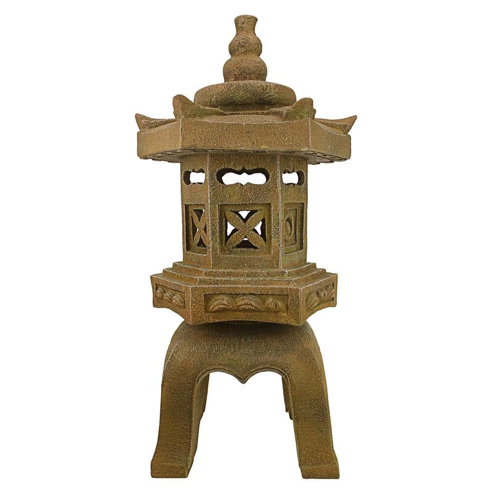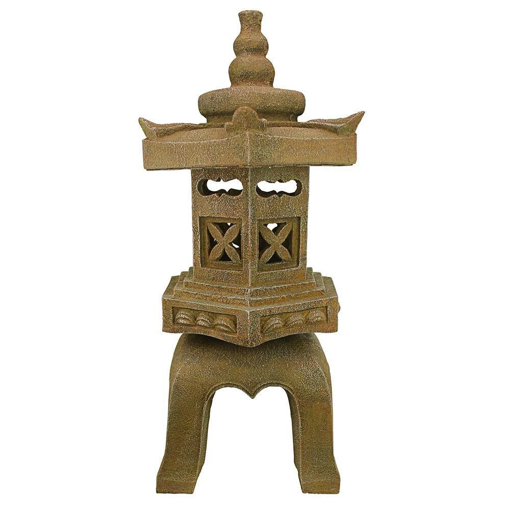 Illuminate your evenings with the tranquil energy of our graceful, East Asian style pagoda statue, featuring low-voltage LED lights that accent the graceful shape of this beloved Japanese form. Cast over 2-feet tall in quality designer resin with tiers representing the 5 elements of earth, water, fire, wind, and sky, this Design Toscano Oriental sculpture with textured faux stone finish brings peace to a Zen garden or other sacred space. 13.50 in. W x 12 in. D x 27 in. H, 18 lbs.