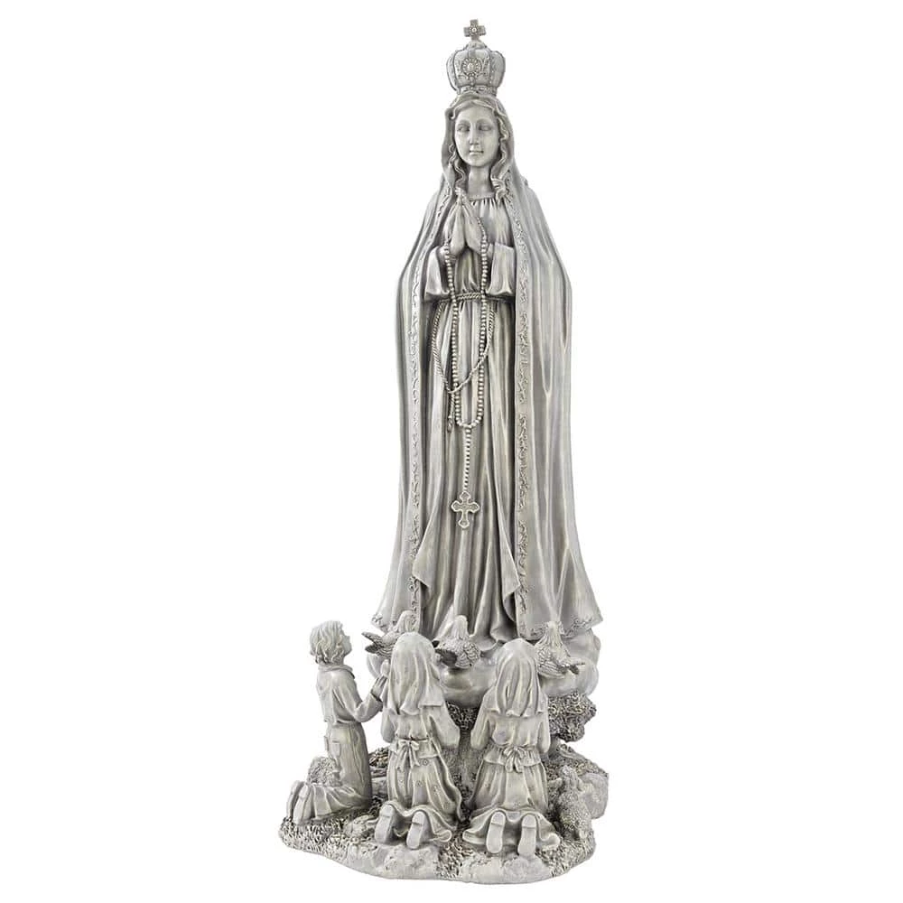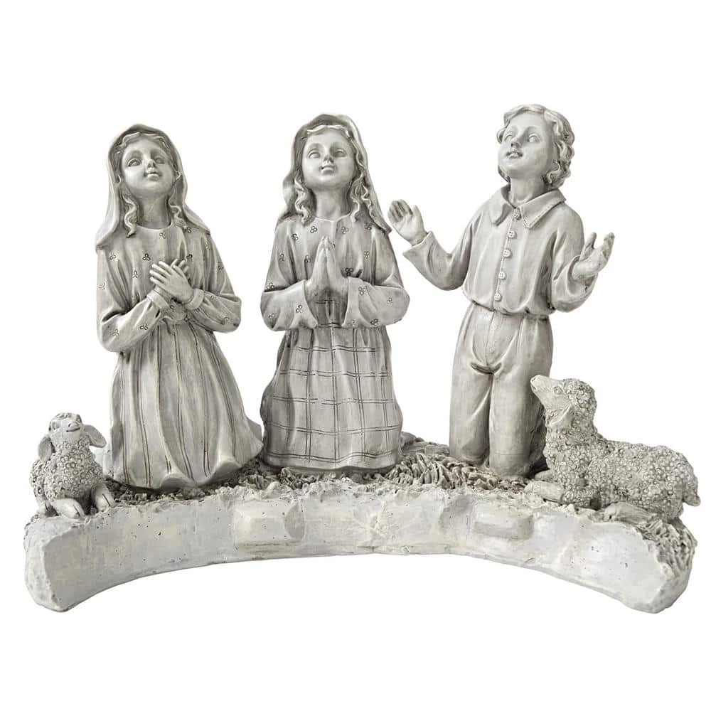 At nearly 5 ft. tall, this awe-inspiring exclusive replicates the legendary vision that appeared to 3 shepherd children at Fatima, Portugal in 1917. From the rosary to the upturned eyes of the faithful ones, its master sculptor ensures that this quality designer resin work will be the crowning glory of any sacred spot in home or garden. 12 in. W x 14 in. D x 32 in. H, 9 lbs.