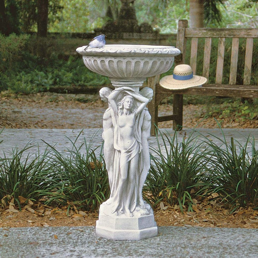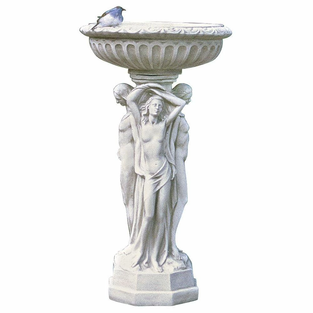 Maenads, the frenzied worshippers of the god Dionysus (Bacchus), are frequent images in ancient Greek art. Here, the languid, stylized statue trio encircles an exquisite architectural pedestal urn, hair and garments flowing in a dance of pleasure. This sophisticated statue sends the message that you take the exterior of your home every bit as seriously as the interior. 2-pieces. 18 in. W x 18 in. D x 35 in. H, 22 lbs.