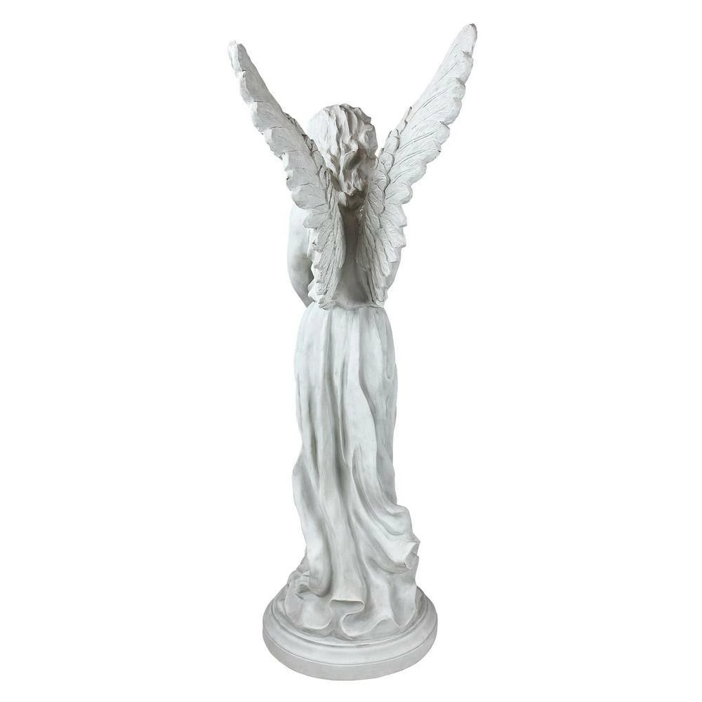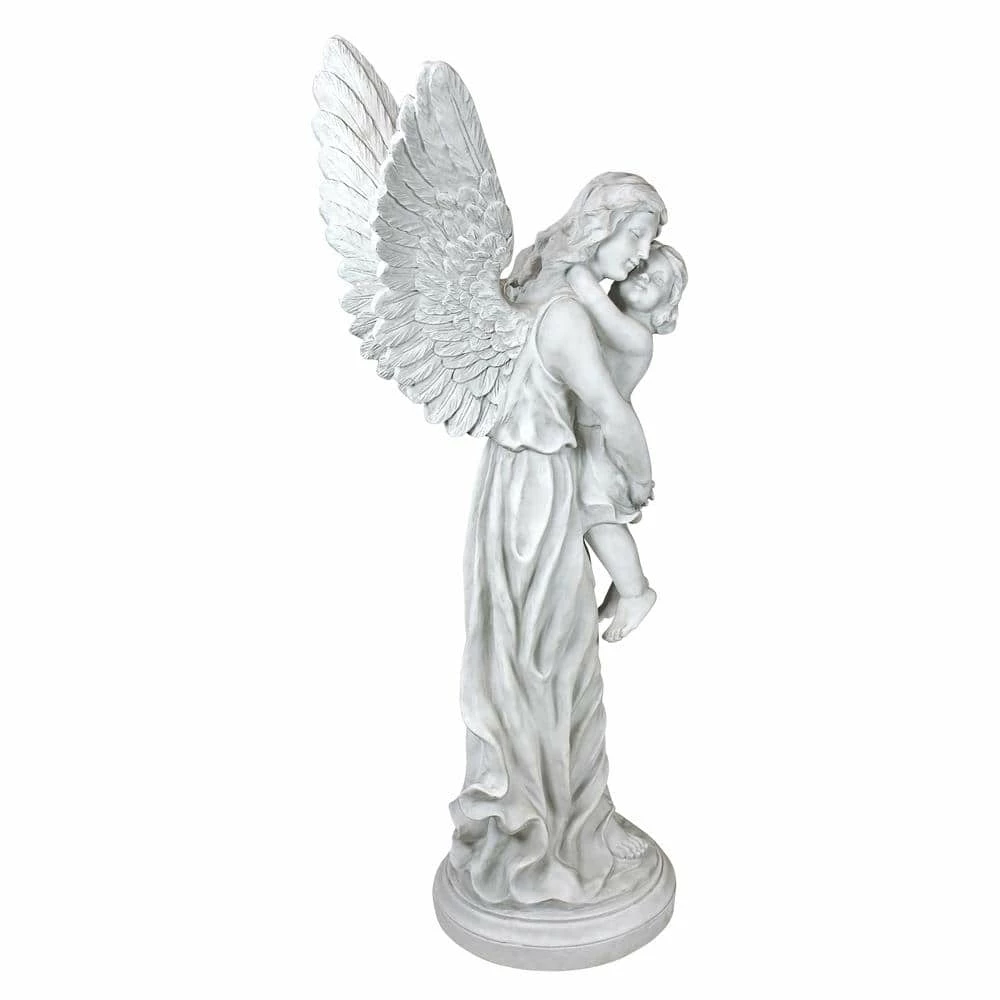 Do you want an angel watching over your loved ones. Rising above a yard tall, this heavenly angel statues reaches with wide, feathered wings to embrace the child with a devotional love that endures and protects. Our angel lawn ornament, created as a religious angel statue exclusively for Design Toscano, is cast in quality designer resin with an antique stone finish as a treasured garden memorial or spiritual focal point. 14 in. W x 13 in. D x 38 in. H, 18 lbs.