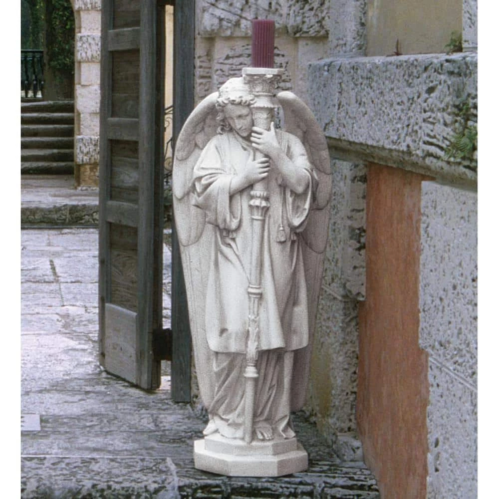 At just over a yard high, this scaled version of the revered 18th-century original angel statue we discovered in an Italian cathedral is classically posed and full of spiritual rapture. When standing guard at your doorway, fireplace or garden path, our angel figurine will be admired for every detail from her feathered angel wings to the soft folds of her gown. Cast in quality designer resin, our Design Toscano-exclusive boasts a weathered stone finish to replicate the antique original. Now bring our angel statues’ quintessential European elegance to your own home or grounds. 13 in. W x 11.50 in. D x 38 in. H, 35 lbs.