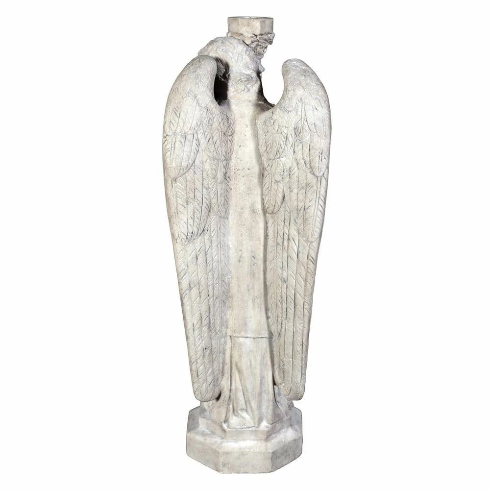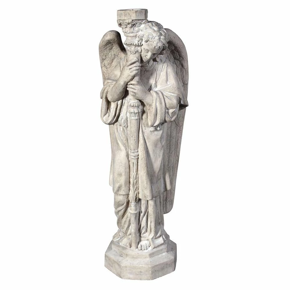 At just over a yard high, this scaled version of the revered 18th-century original angel statue we discovered in an Italian cathedral is classically posed and full of spiritual rapture. When standing guard at your doorway, fireplace or garden path, our angel figurine will be admired for every detail from her feathered angel wings to the soft folds of her gown. Cast in quality designer resin, our Design Toscano-exclusive boasts a weathered stone finish to replicate the antique original. Now bring our angel statues’ quintessential European elegance to your own home or grounds. 13 in. W x 11.50 in. D x 38 in. H, 35 lbs.