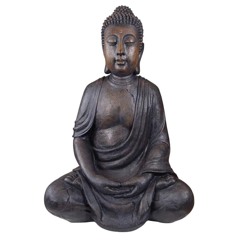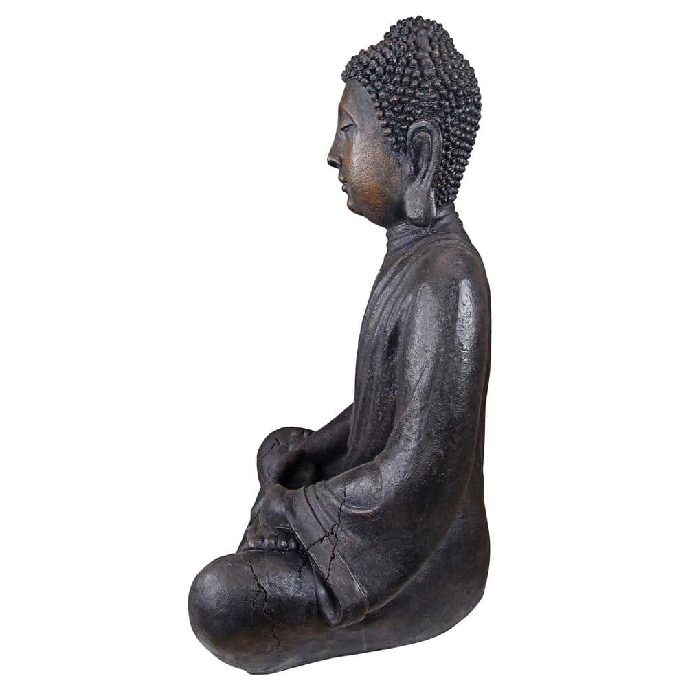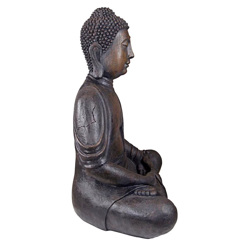 Sculpted with the tranquil majesty of those in ancient monasteries, this 3 dimensional work of decorative Asian art creates a meditative place for home or garden. Our Design Toscano-exclusive, quality designer resin statue with stone finish captures the faux distressing that lends the appearance of an aged Asian antique. The peaceful Oriental Buddhist nature of this sculpture lends its quiet countenance to home or garden sanctuary. Another breathtaking Asian garden statue from Toscano. 27 in. W x 19 in. D x 40 in. H, 29 lbs.