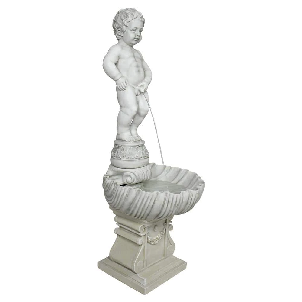 We’ve captured this icon of 1 of Europe’s most beautiful cities while versions of his legendary story continue to multiply over the centuries. Manneken Pis (little man pee in Dutch), a famous landmark and rite of passage for many European tourists, has stood near Brussels Town Hall since 1619. This delightful and mischievous sculpture with included UL-listed recirculating pump, shell basin and elevating plinth base, will bring classic art and humor to your home or garden. This Toscano exclusive is cast in quality designer resin and finished in faux stone. 17 in. W x 17 in. D x 45.50 in. H, 33 lbs.