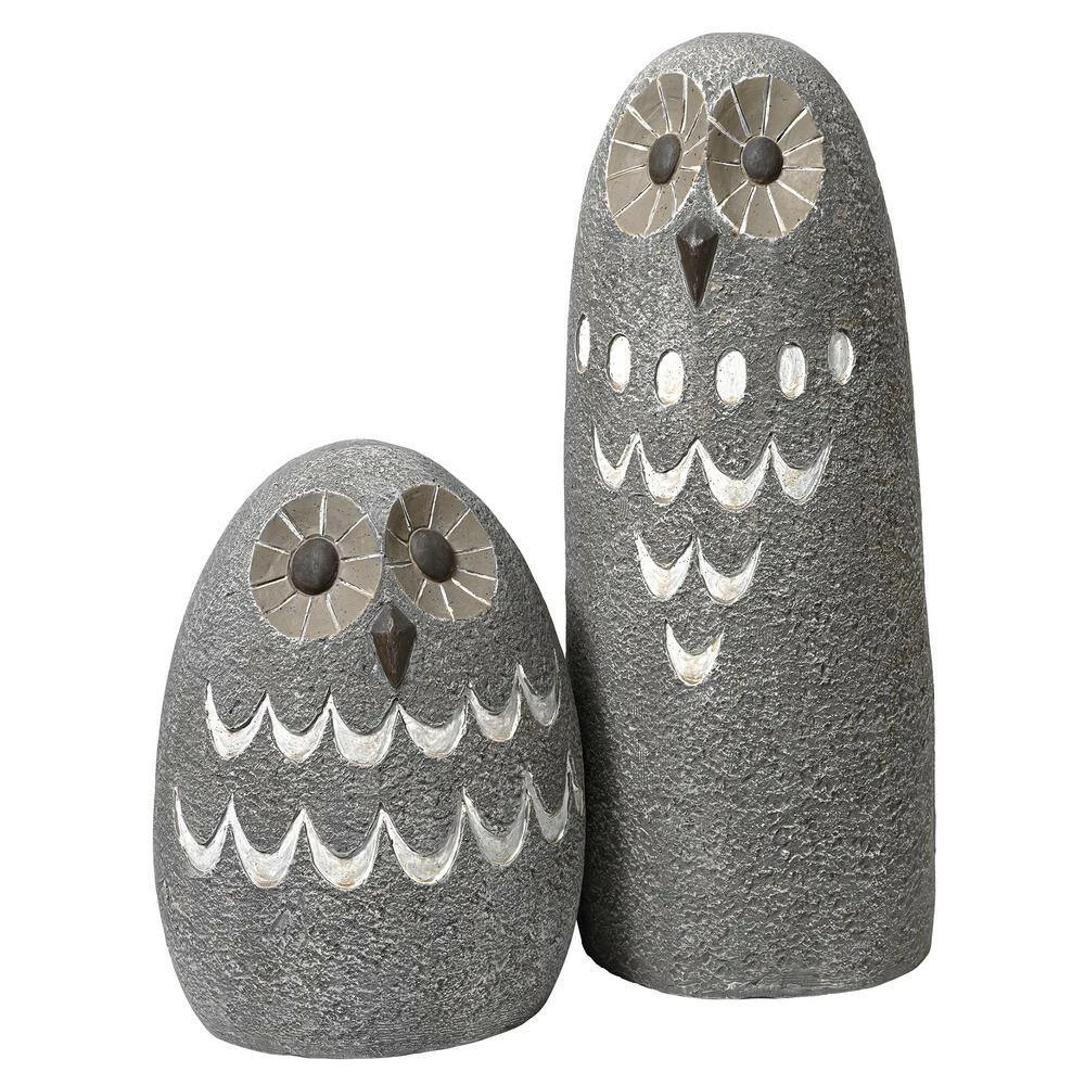 What a hoot. Our absolutely adorable, matching set of outdoor owls will ogle amorously, flirtatiously or impertinently while adding charm and wisdom from the perch of your choosing. Place our feathered fowls in your garden and watch as their wise, wide-eyed gazes follow you from deck to pond. Hand-crafted in quality designer resin with a hand-painted finish exclusively for Design Toscano, this pair of bird statues is a true flight of fancy flanking a garden gate, nesting near a favorite tree or alighting beside a pond or pool. Our bird sculptures make great gifts for nature lovers – and whooo doesn’t love owls. Plump Owl: 11 in. W x 9 in. D x 14.50 in. H, 7 lbs. Tall Owl: 10 in. W x 9 in. D x 24.50 in. H, 11 lbs.