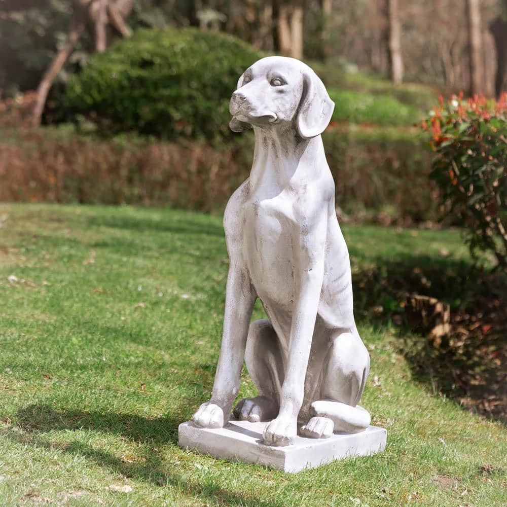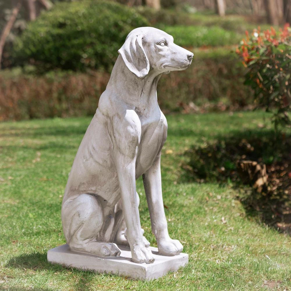 Enhancing your garden or porch with this elegant dog statue, brings a touch of artistic to your space. This dog sculpture is made of quality MGO and fiberglass that is very durable. Compared to the traditional stone or concrete statue, it is light weight, easy to move to anywhere you like. Designed as a sitting Labrador Retriever, looks vivid and interesting. The handmade sand beige finish with distressed details gives a sense of vintage and advanced texture. This dog statue is a great decorative figurine that is sure to highlight your garden appearance, also a great gift.
