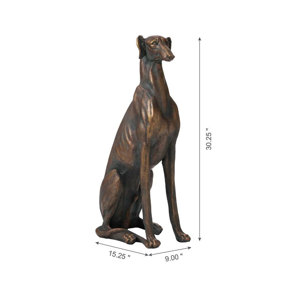 Enhancing your garden or porch with this elegant dog statue, brings a touch of artistic to your space. This dog sculpture is made of quality MGO and fiberglass that is very durable. Compared to the traditional stone or concrete statue, it is light weight, easy to move to anywhere you like. Designed as a cute sitting greyhound, looks vivid and interesting. The handmade antique dark bronze finish gives a sense of vintage and advanced texture. This dog statue is a great decorative figurine that is sure to highlight your garden appearance, also a great gift.