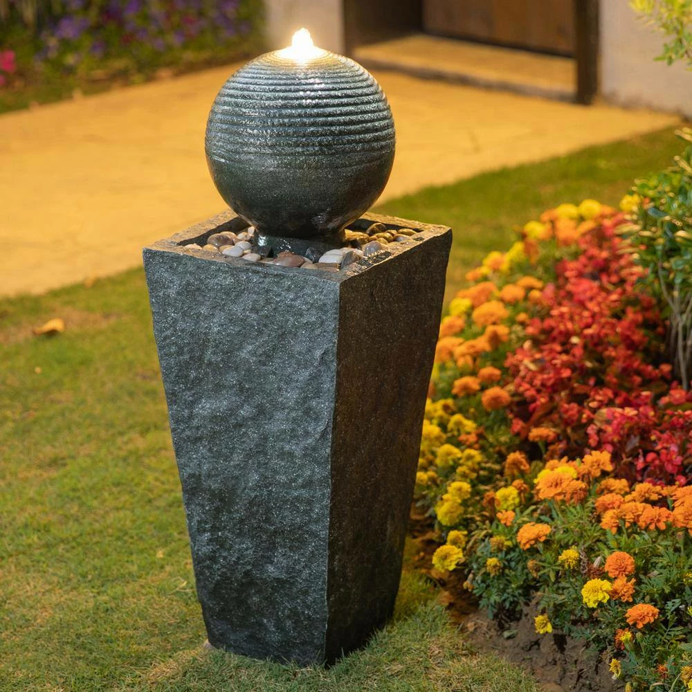 Glitzhome 31.69 in. H Outdoor Polyresin Rippling Floating Sphere Pedestal Floor Fountain
