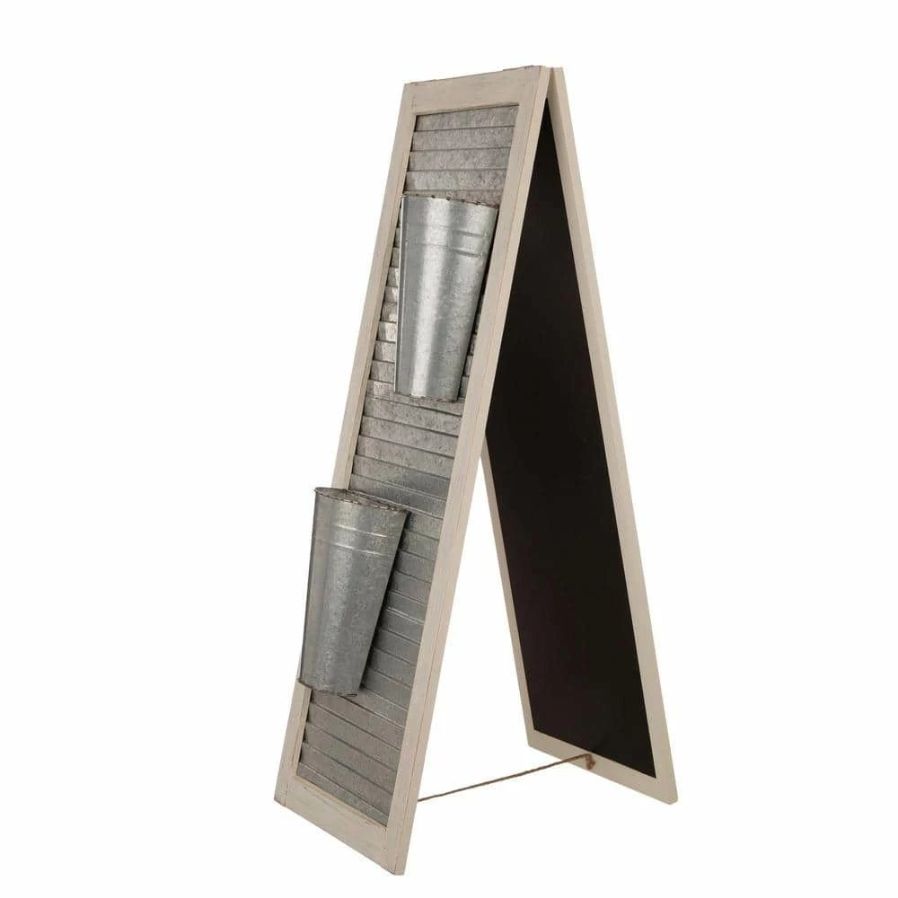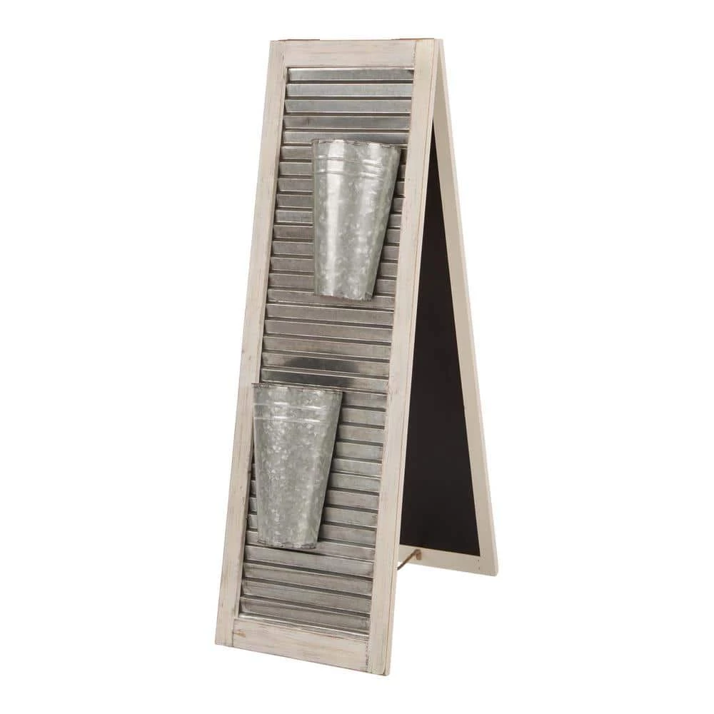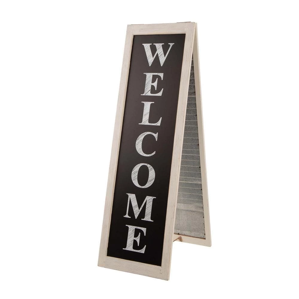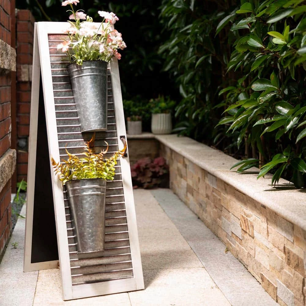 Adding seasonal cheer and festive touch to your space with this welcoming porch sign or planter stand. This porch sign features double function, natural WELCOME porch sign and metal shutter planter stand with 2 tubs to hold plant arrangements. Perfect for placement on the front porch, home’s entry, in the garden, on the patio or any other places.