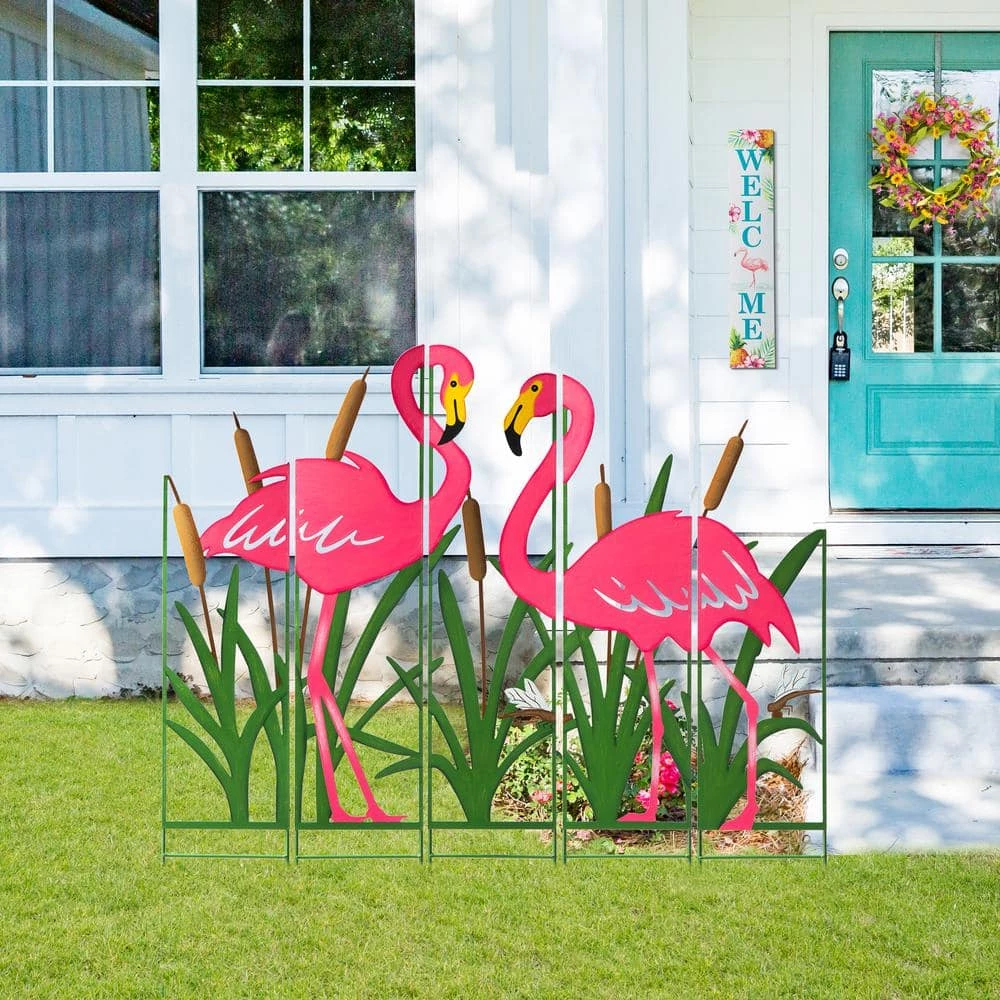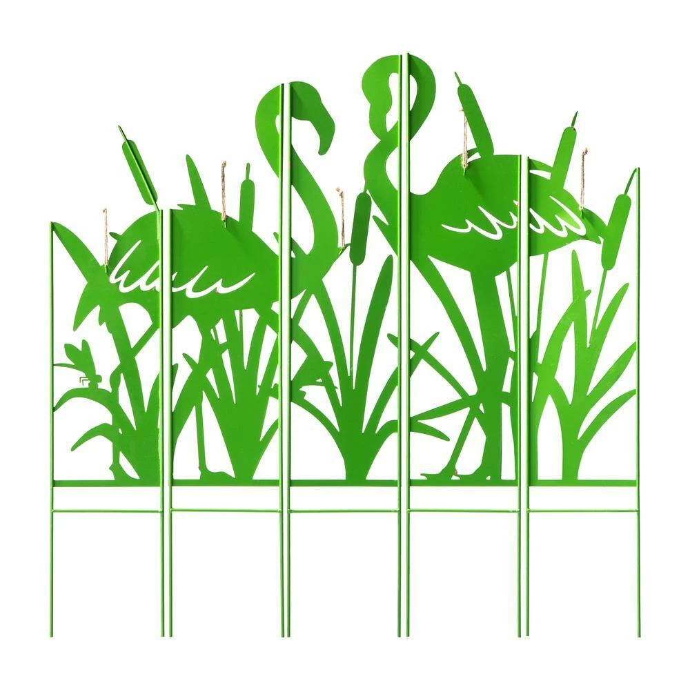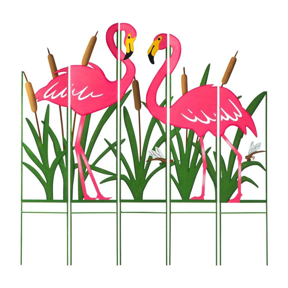 Enhancing your garden with this modern and stylish colorful garden stake. The unique and interesting screen with a silhouette of a couple of flamingos out of grass looks very vivid and charming, adds a breath of spring and summer, which will be a great addition to your garden, patio or backyard. Creative 5 separated-pieces design makes it easy to move than normal big heavy garden stake.