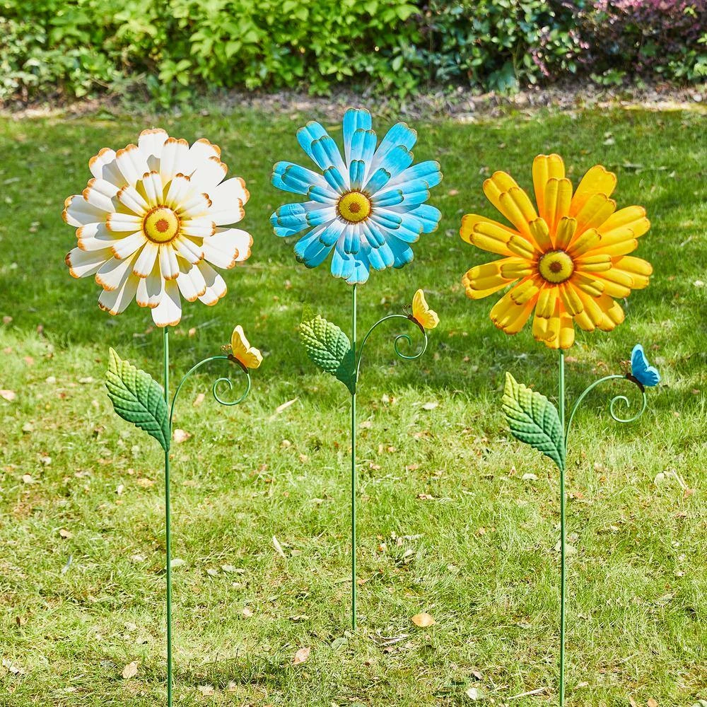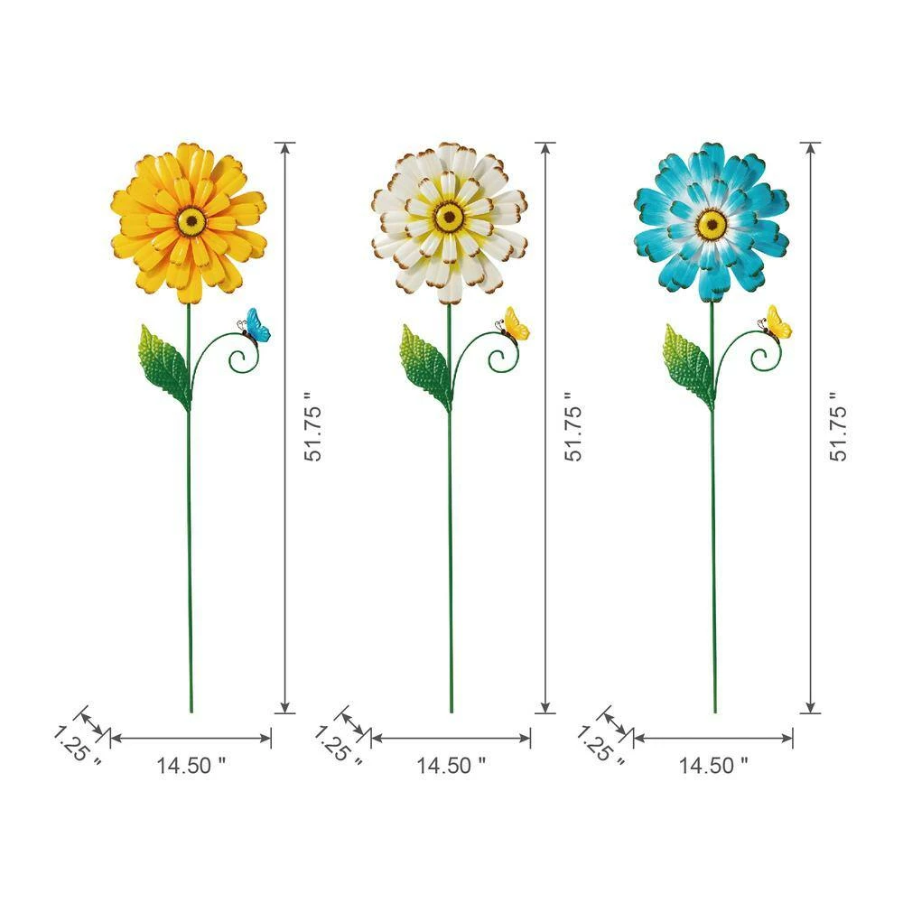 This set of 3 yard stakes with different color for each that will add a touch of pop color to your space. Featured with layered dimensional flowers that looks vivid and realistic. It has a detachable metal stake and hanging loop, not only can be used as a garden stake but also as a wall decor. This versatile set will be a perfect addition to your home or garden.