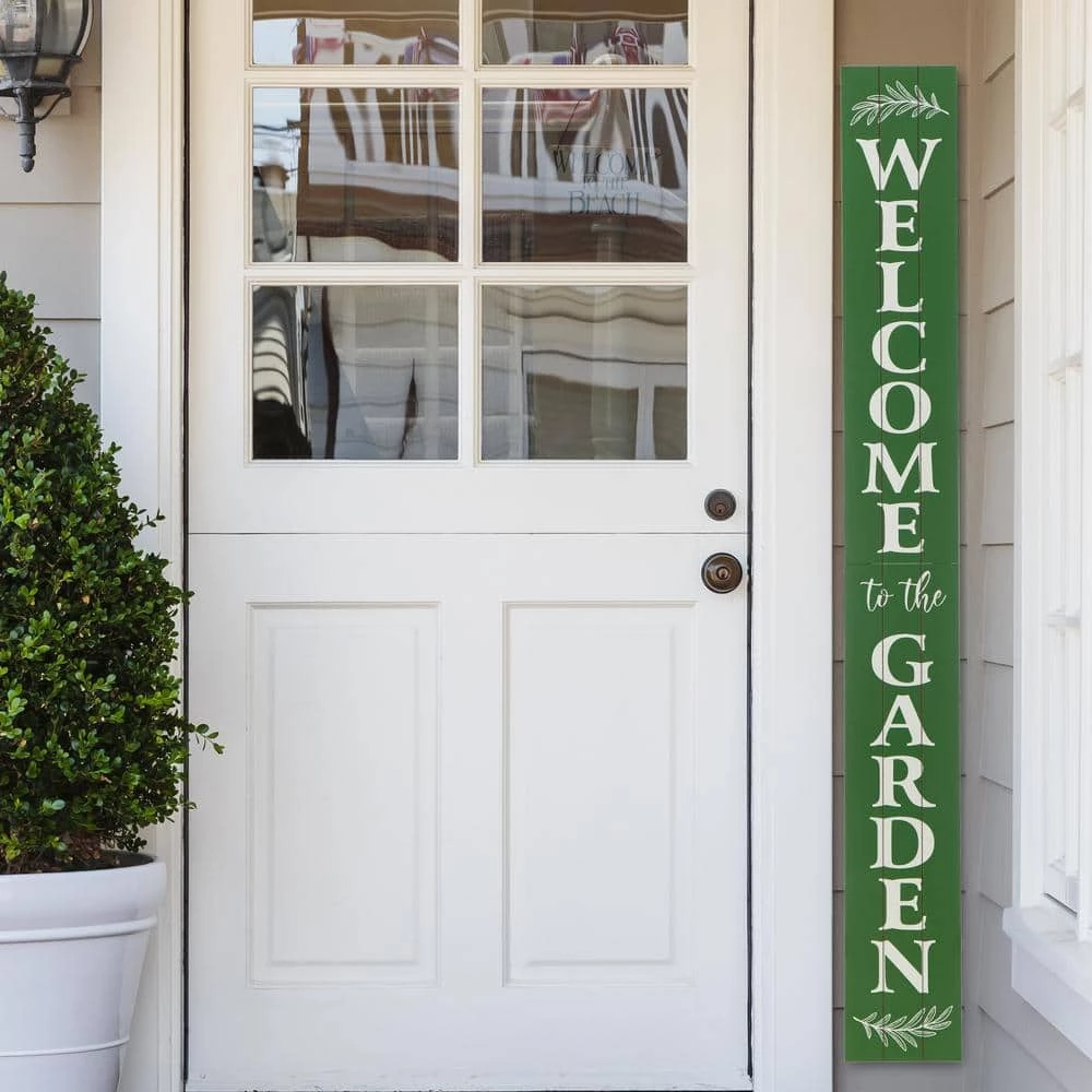 Enhancing your space with this oversized modern and stylish green porch sign. The simple green background perfect match with white text that looks very elegant and charming. This minimalist design and bright color create an eye-catching landscape, which will be a wonderful addition to your porch, garden, home or any living space.
