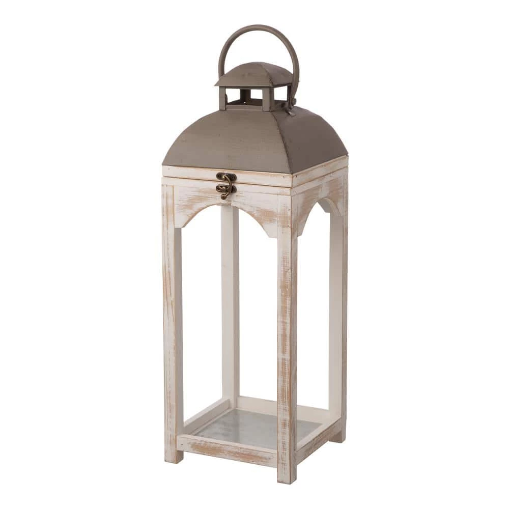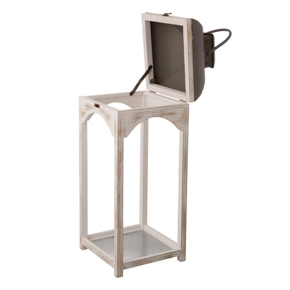 Made of natural firwood frame without glass, with galvanized base for flame-retardant, this modern distressed finished lantern easily creates a warm inviting glow anywhere in your home, porch or yard. With a sturdy metal ring at the top, the lantern is perfect for a hanging wall sconce. So gorgeous, you’ll want to keep it at home for yourself.